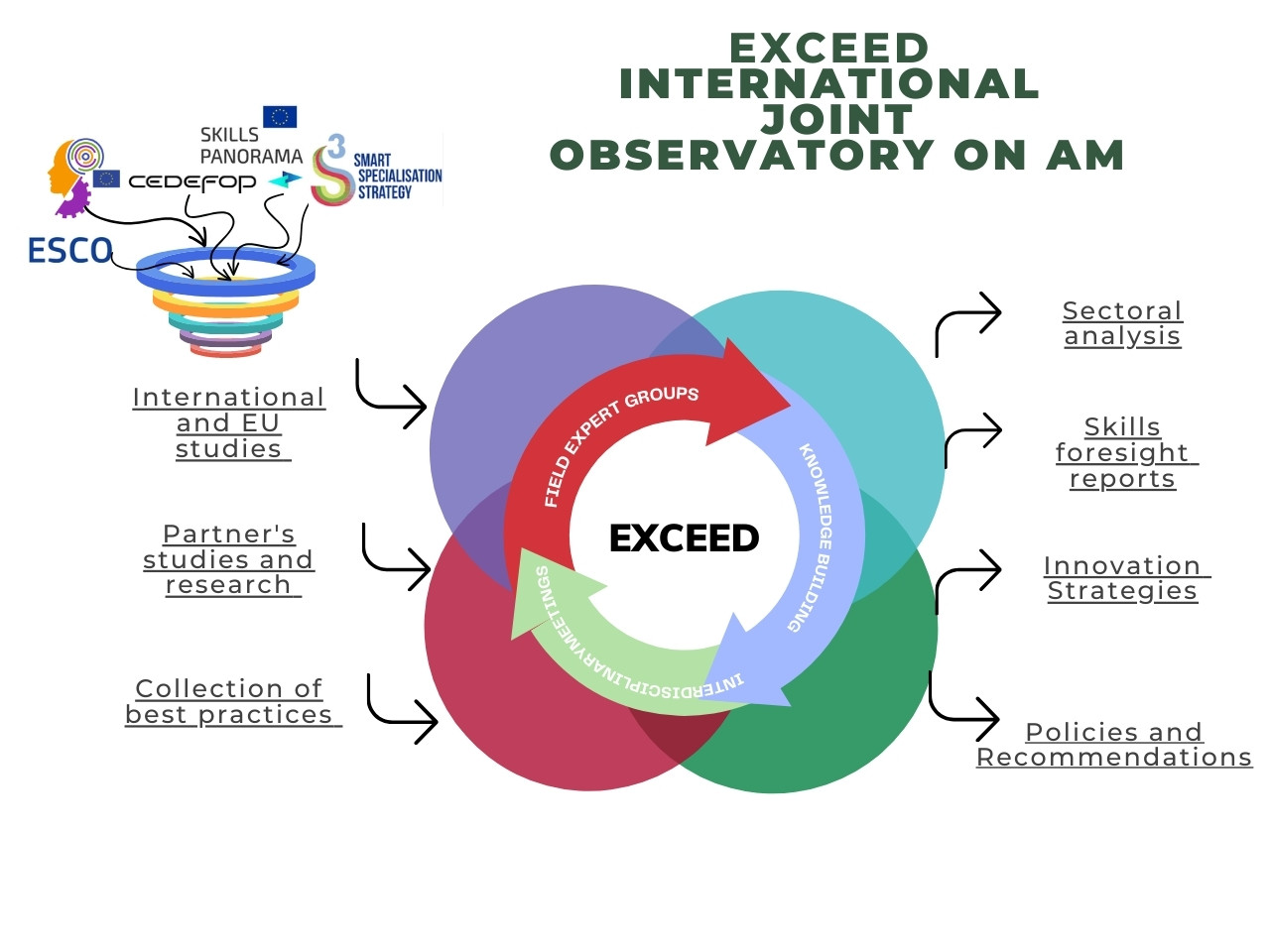 Welcome to EXCEED, international observatory on Advanced Manufacturing. The Observatory is an established to drive the deco-digital transition in the AM sector, built on a robust business–education partnership that actively engages universities, research centres, and companies across partner countries.